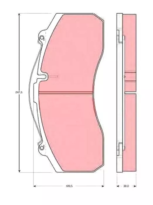 Latime [mm]: 247,5Inaltime [mm]: 109,5Grosime [mm]: 30Pozitie de montare: FrontSistem de franare: KNORR SB 7000Senzor uzura frana: Nu
